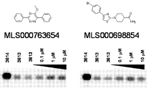 Substituted thiazol-2-yl-piperidines and -piperazines increase production of SMN2, the isoform of survival motor neuron protein that is expressed from a centromeric copy, and this should improve disease serverity in spinal muscular atrophy: this is the message from WO 2011/130515 (U.S. Dept. of Health and Univ. of Massachusetts [US]; Oct. 20, 2011). Molecules featuring desirable potency below 150 nM in a luciferase reporter assay were examined to evaluate the effect on the human SMN protein expression using fibroblasts from SMA patients. A compound identified as 8m (not readily identifiable among the many specifically claimed molecules) at 37 nM increased the SMN protein level by 2-3 fold, and produced a more than 2 fold of increase of the number of SMN positive foci in the nucleus. The SMN protein level decreased with increasing drug concentration, matching the bell-shaped curve observed in the reporter assay. Two other compounds (see figure) were also investigated in great detail.